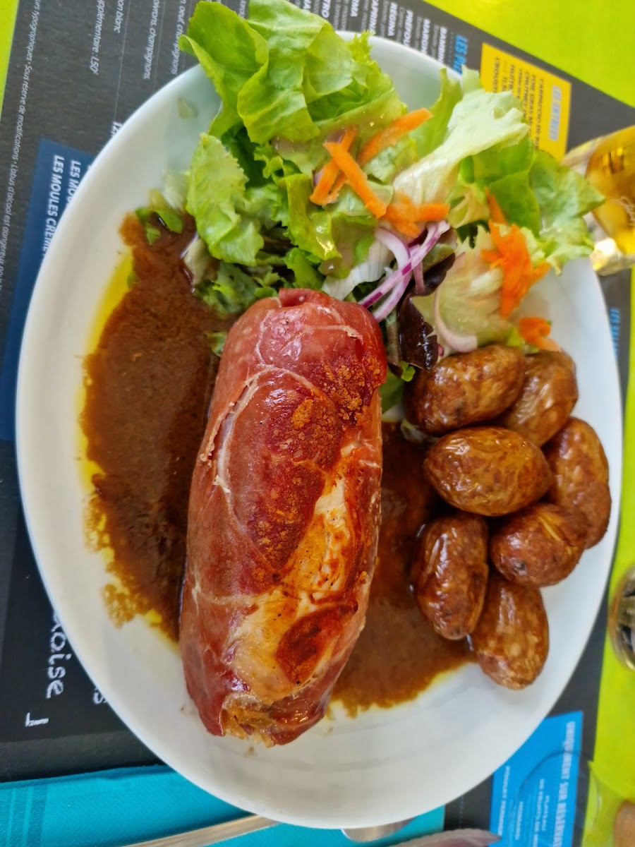 This restaurant is in a holiday park but although we weren't staying there, we were able to visit it. My son and I enjoyed the veggie burger whilst my daughter had the pizza and husband chose the moule with Roquefort. We all enjoyed our meals and there are good veggie & kids options.